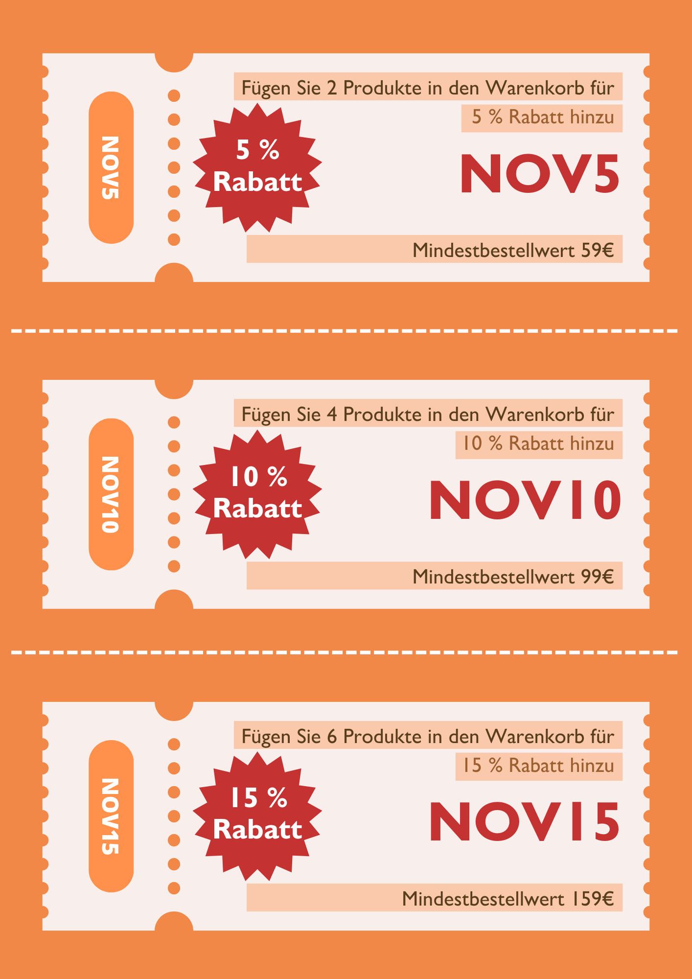 Mit dem Code NOV15 erhalten Sie 15 % Rabatt auf 6 Produkte mit einem Mindestbestellwert von 159€ Netto.